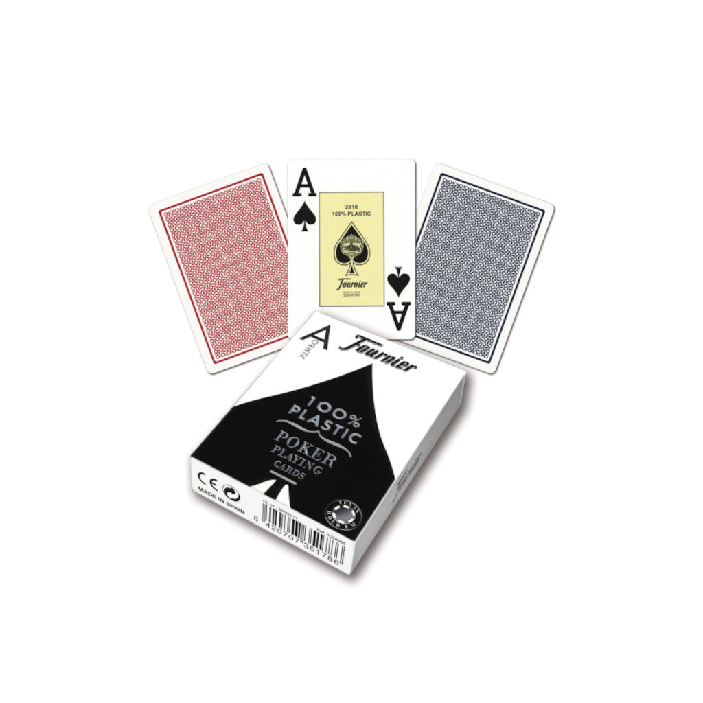 Las barajas 100% plástico duran mucho más que el resto. Con una baraja de plástico, jugando una vez a la semana, podemos tenerla en condiciones durante casi un año.